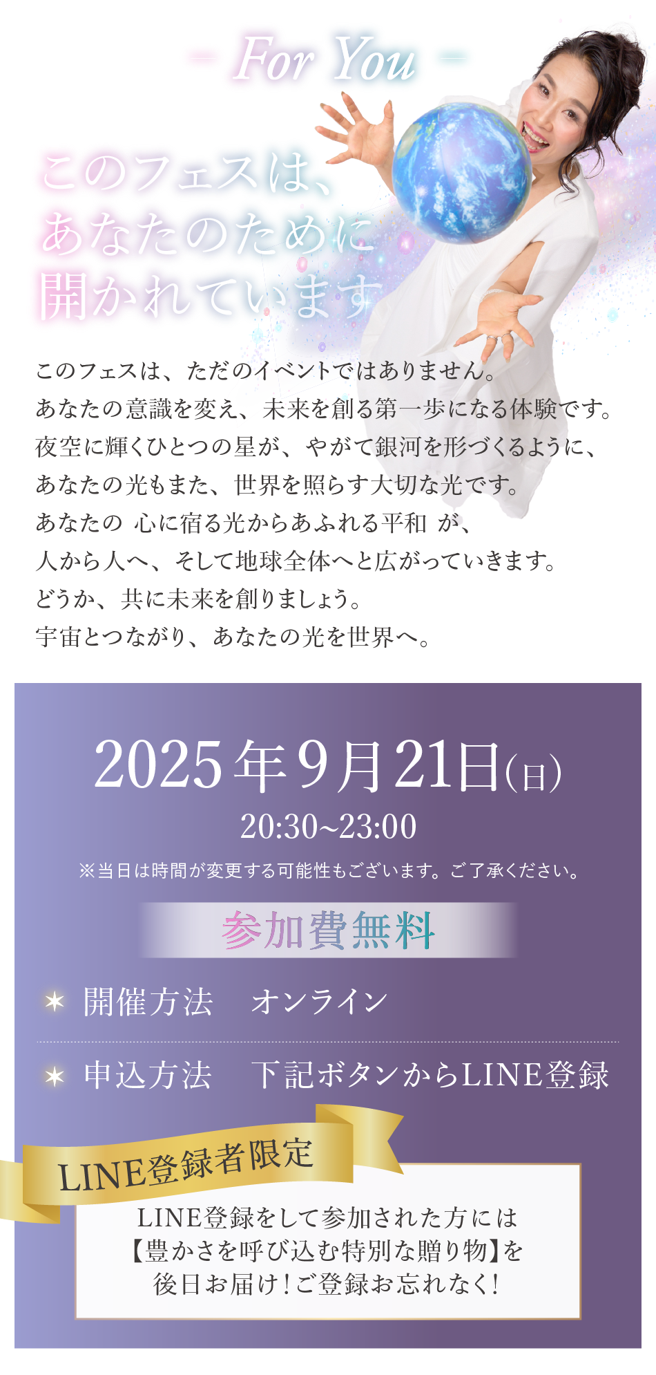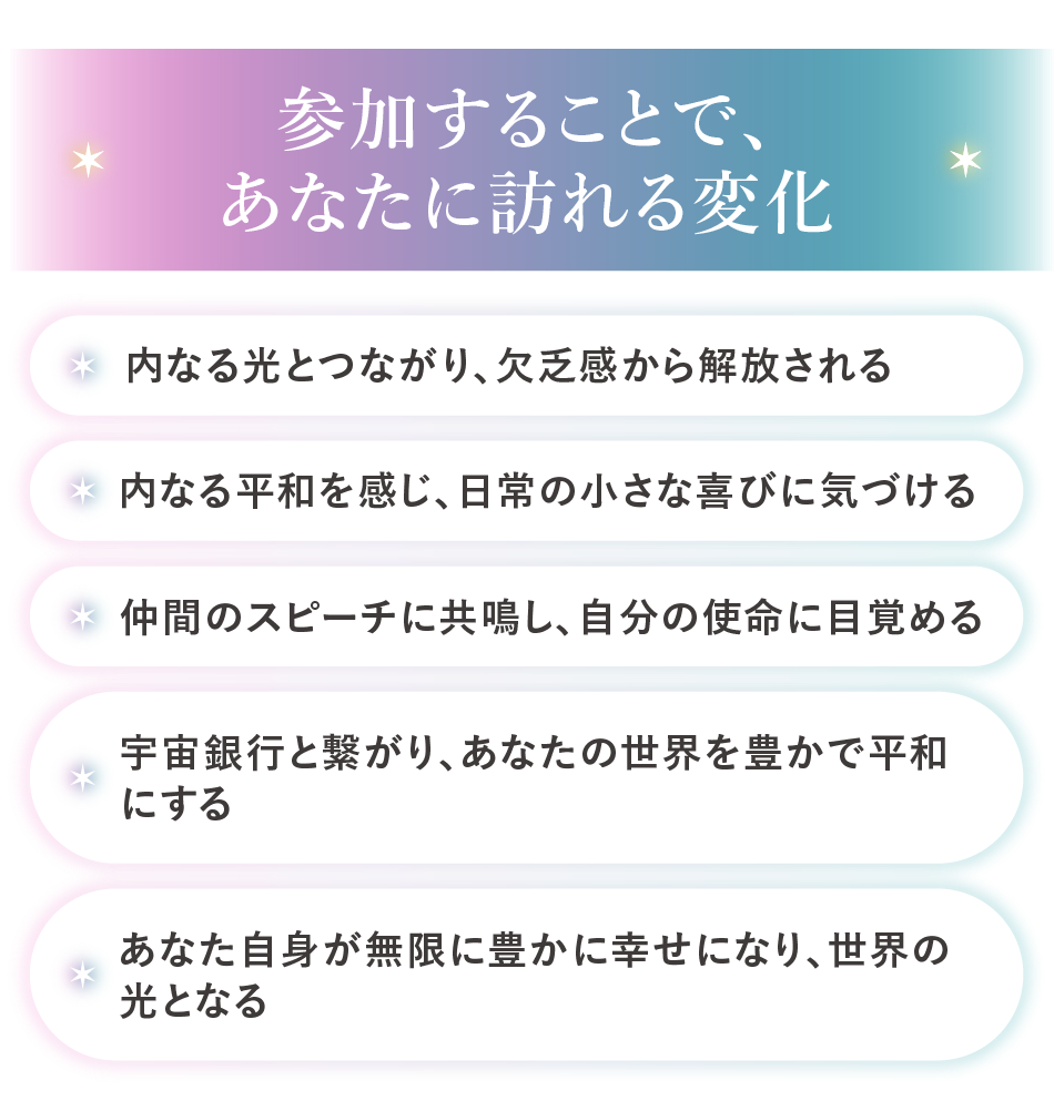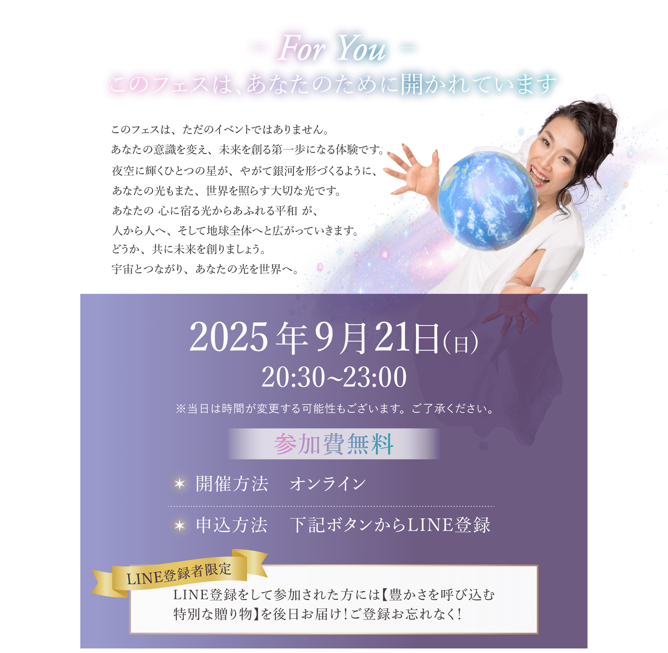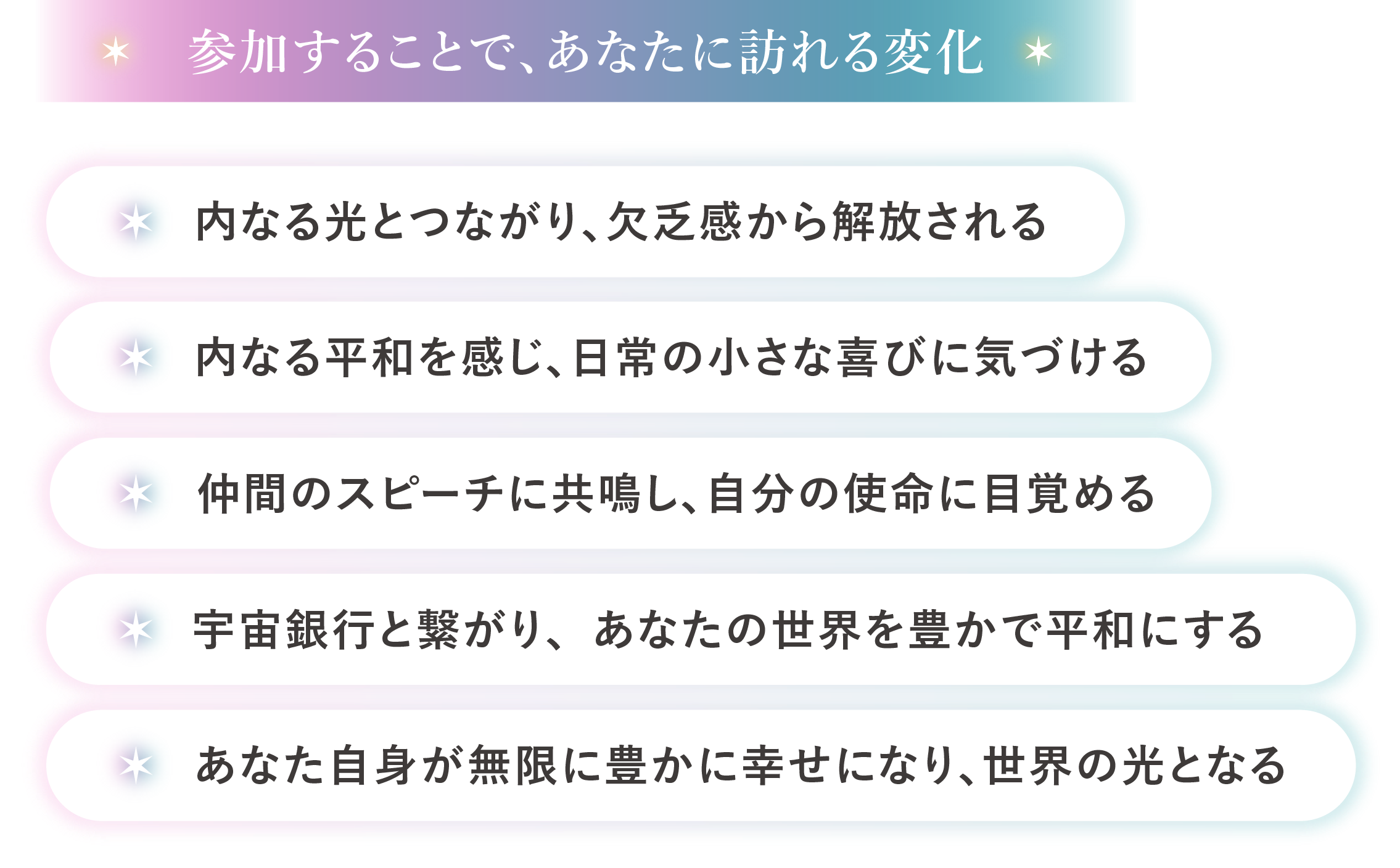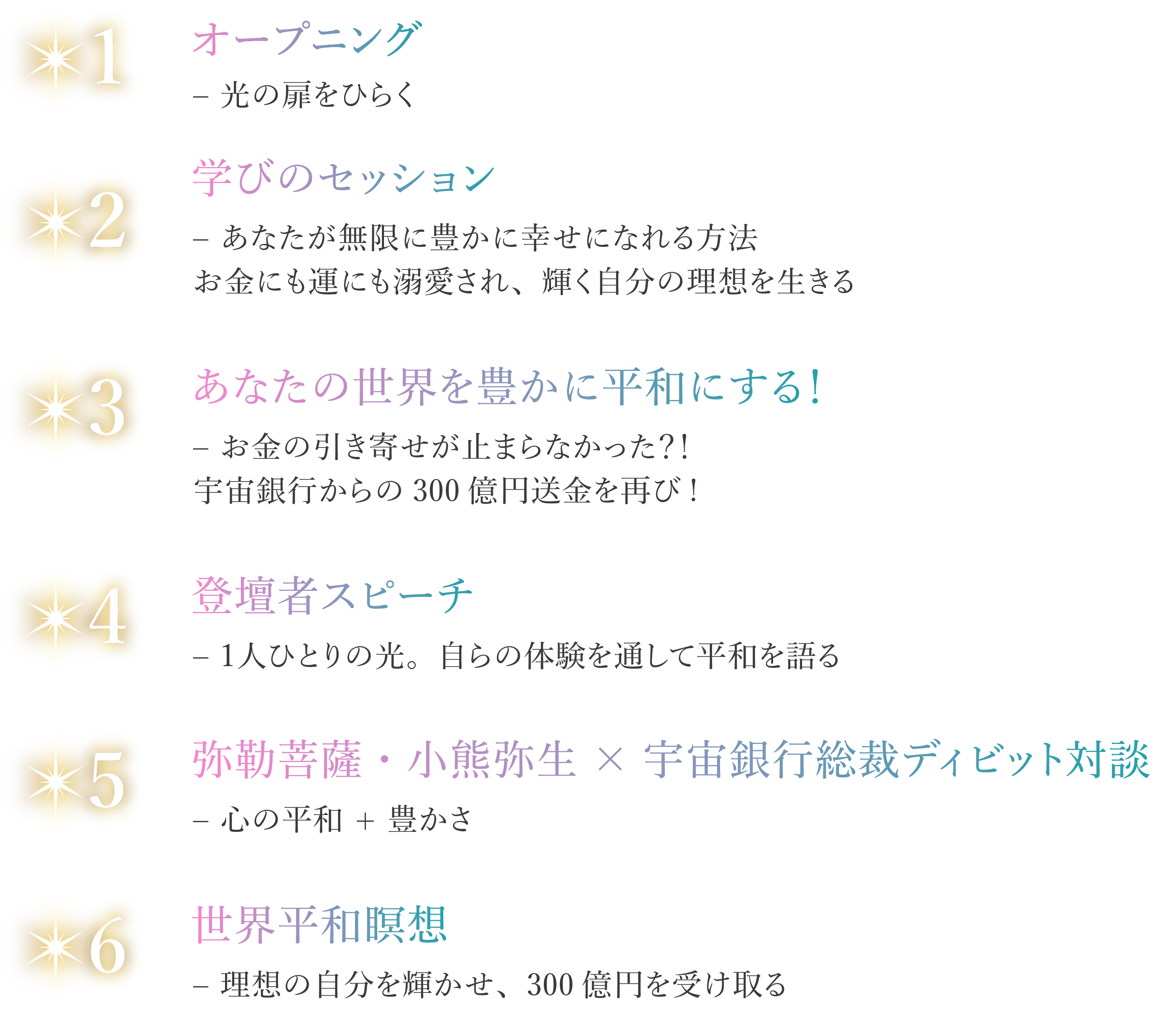 「宇宙銀行の豊かさとつながる平和の未来」へ歩み出してください。